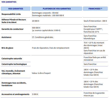 Même le montant de la garantie du conducteur change en fonction du contrat